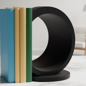 This beautiful circular bookend offers a sleek and modern way to keep your books organized and upright. Its minimalist design adds a touch of contemporary elegance to any bookshelf or desk.