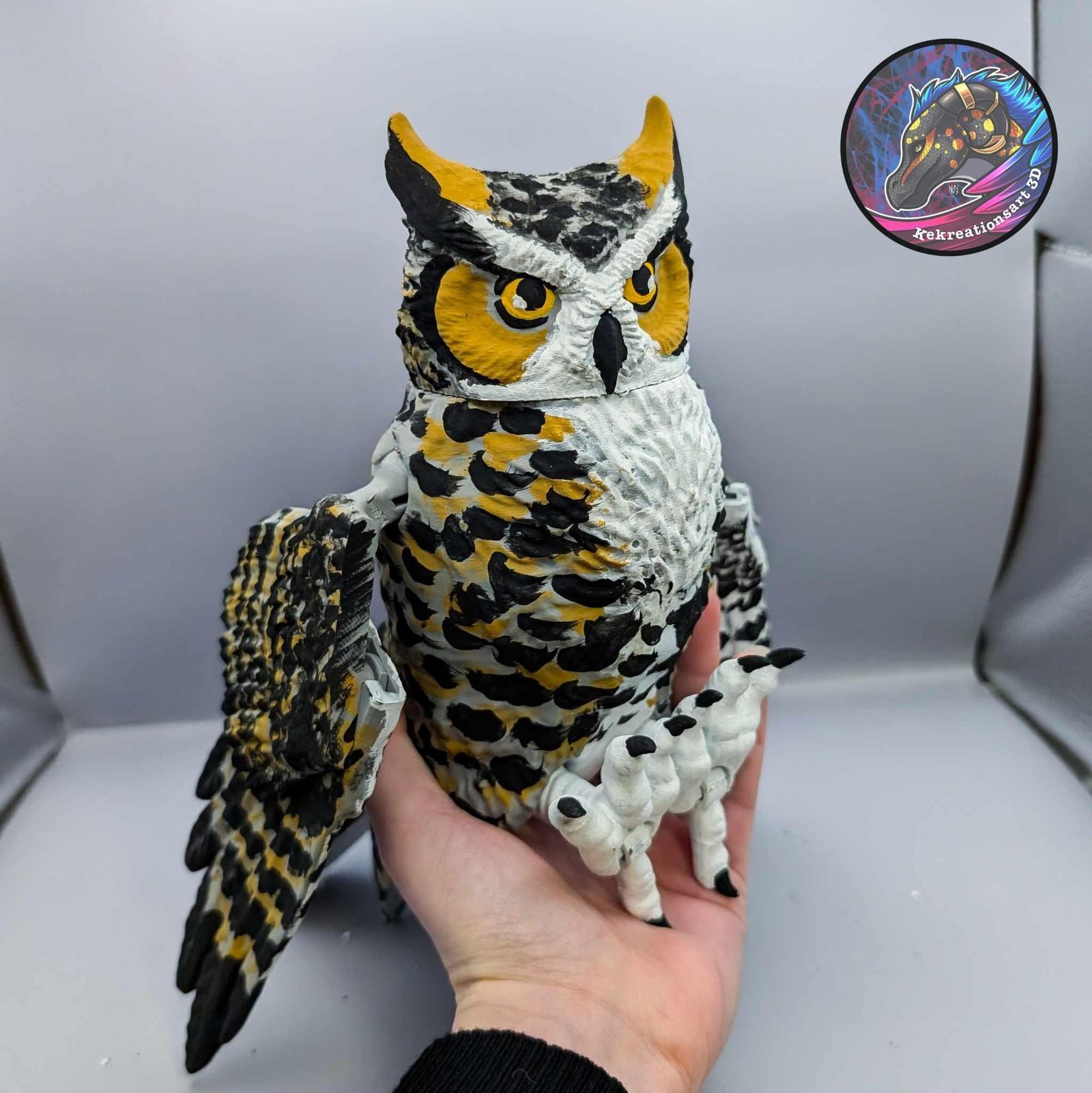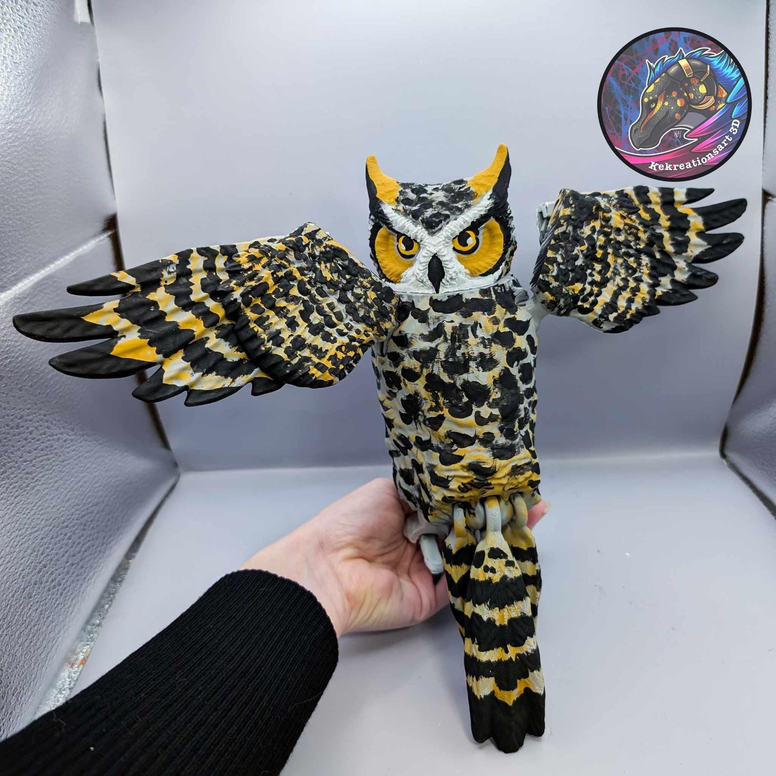 A articulating owl with moving wings and head! A great decor piece for your room and a Halloween piece! ****DOES not come painted as shown in pictures only comes in 1 color. Owl can be painted if you wish to do so.
