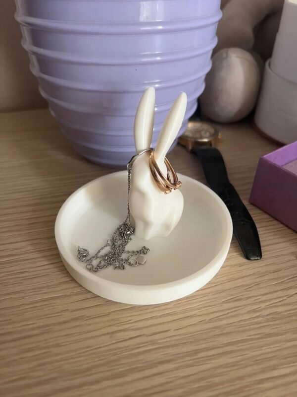 This cute Bunny jewelry organizer is perfect for keeping your rings safe and well-organized. Place your rings one on top of the other on the ears of the bunny! The tray is also a great way to place necklaces, bracelets, and additional jewelry or rings.