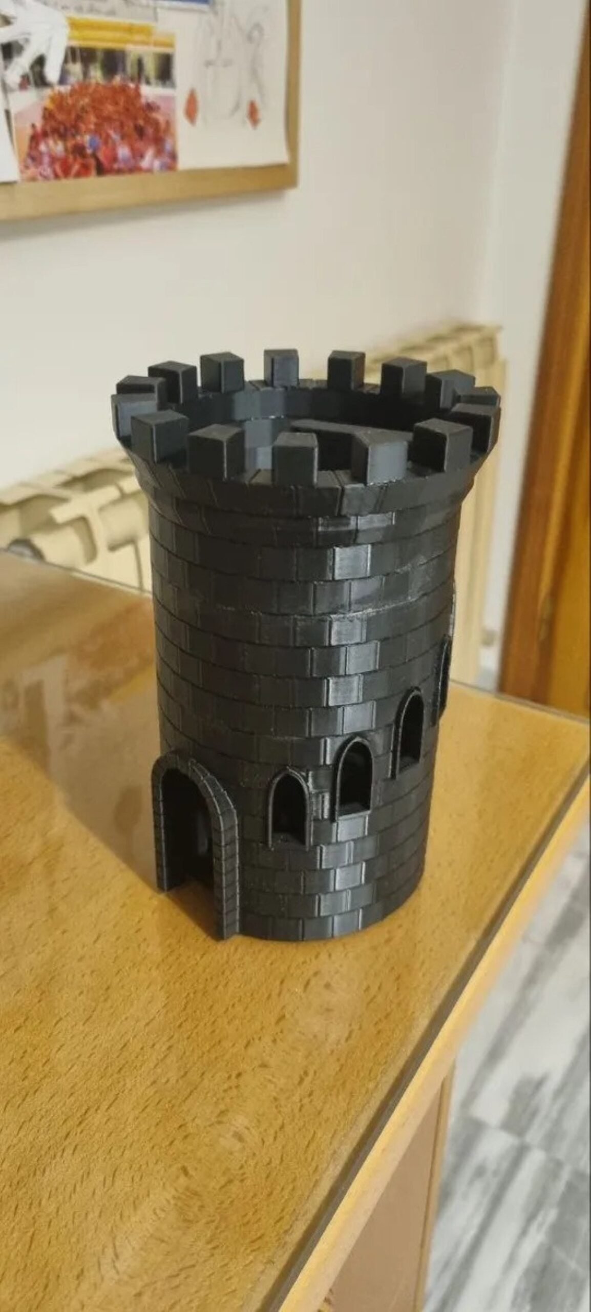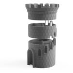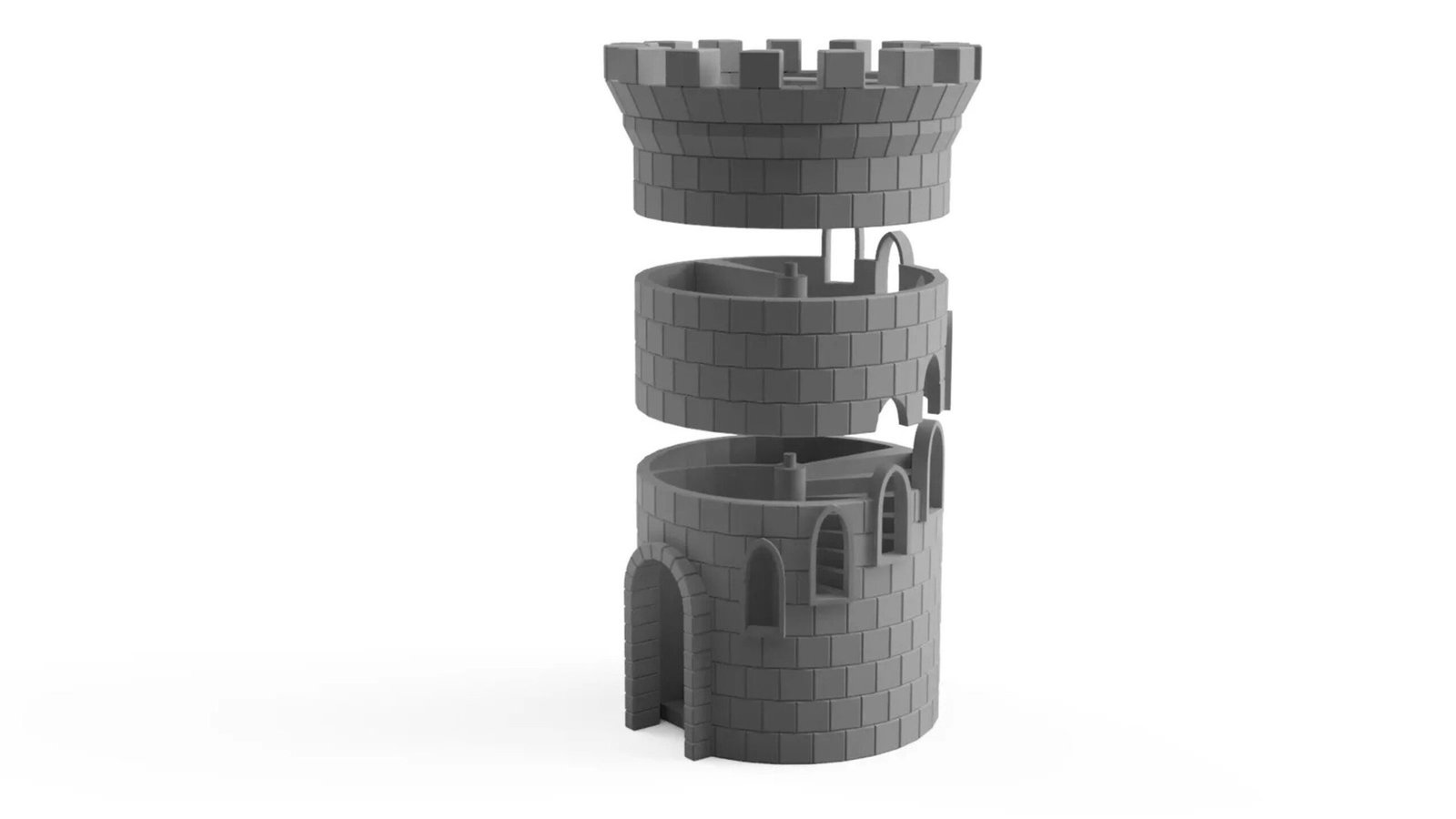 A collapsible design of a castle as a dice tower! Toss the dice in the top of the castle while playing any board game or tabletop!