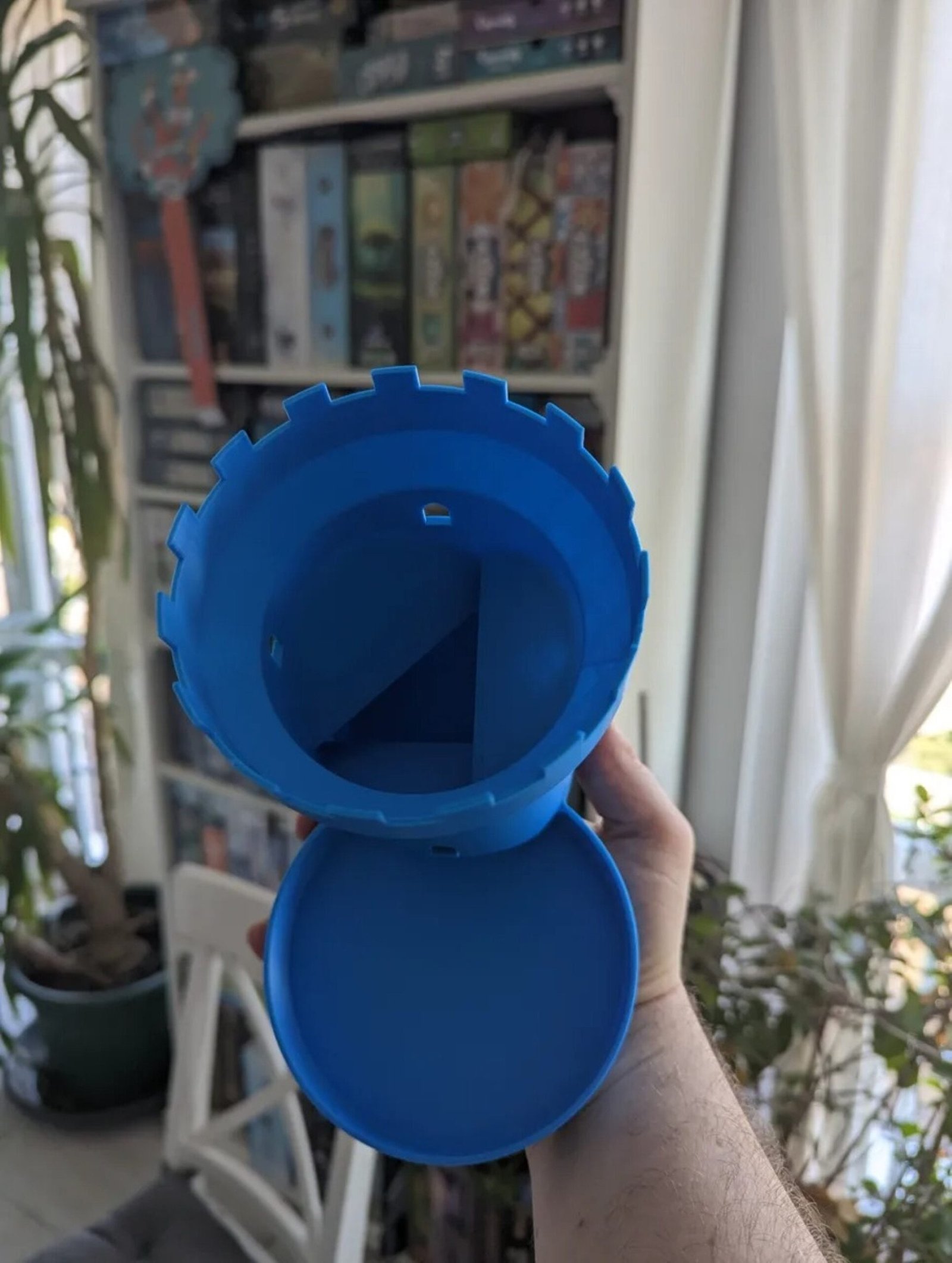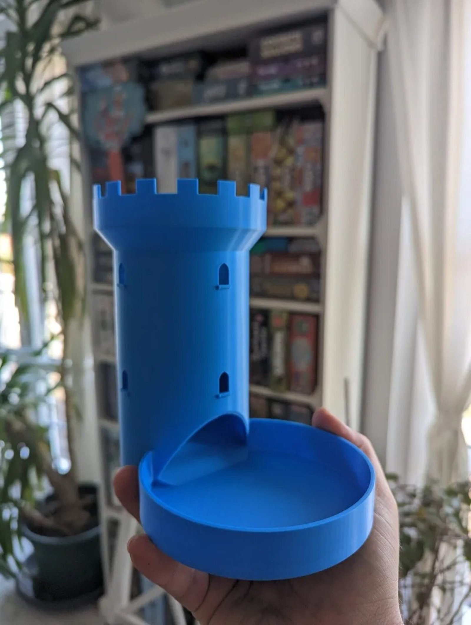 A minimal design of a castle as a dice tower! Toss the dice in the top of the castle while playing any board game or tabletop! Choose from a variety of color options to customize your very own castle themed dice tower