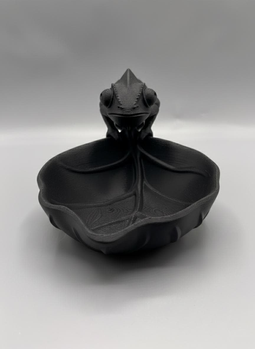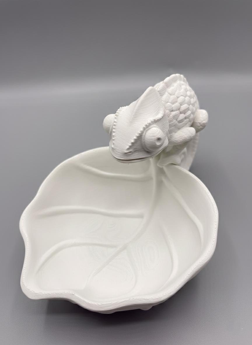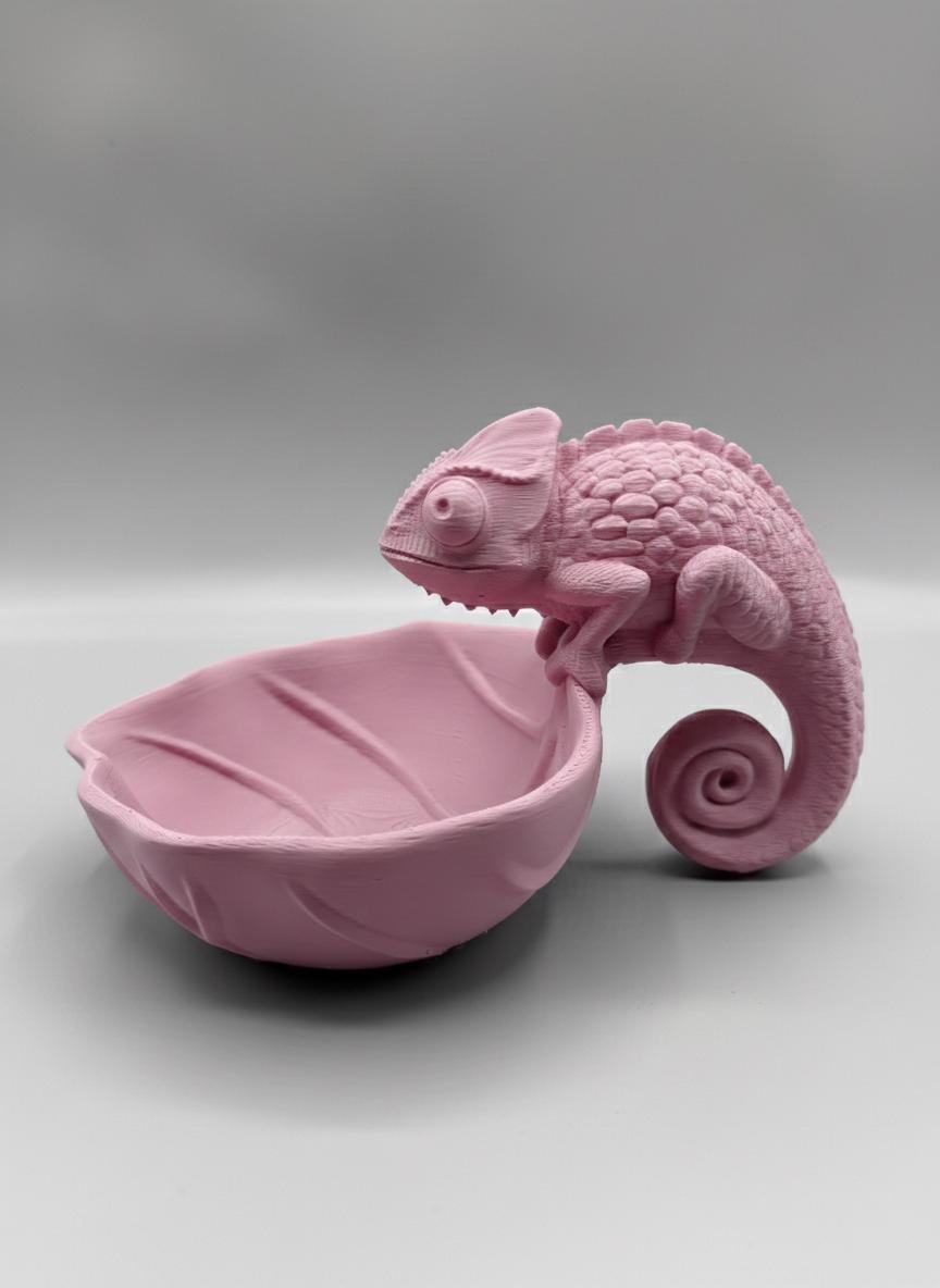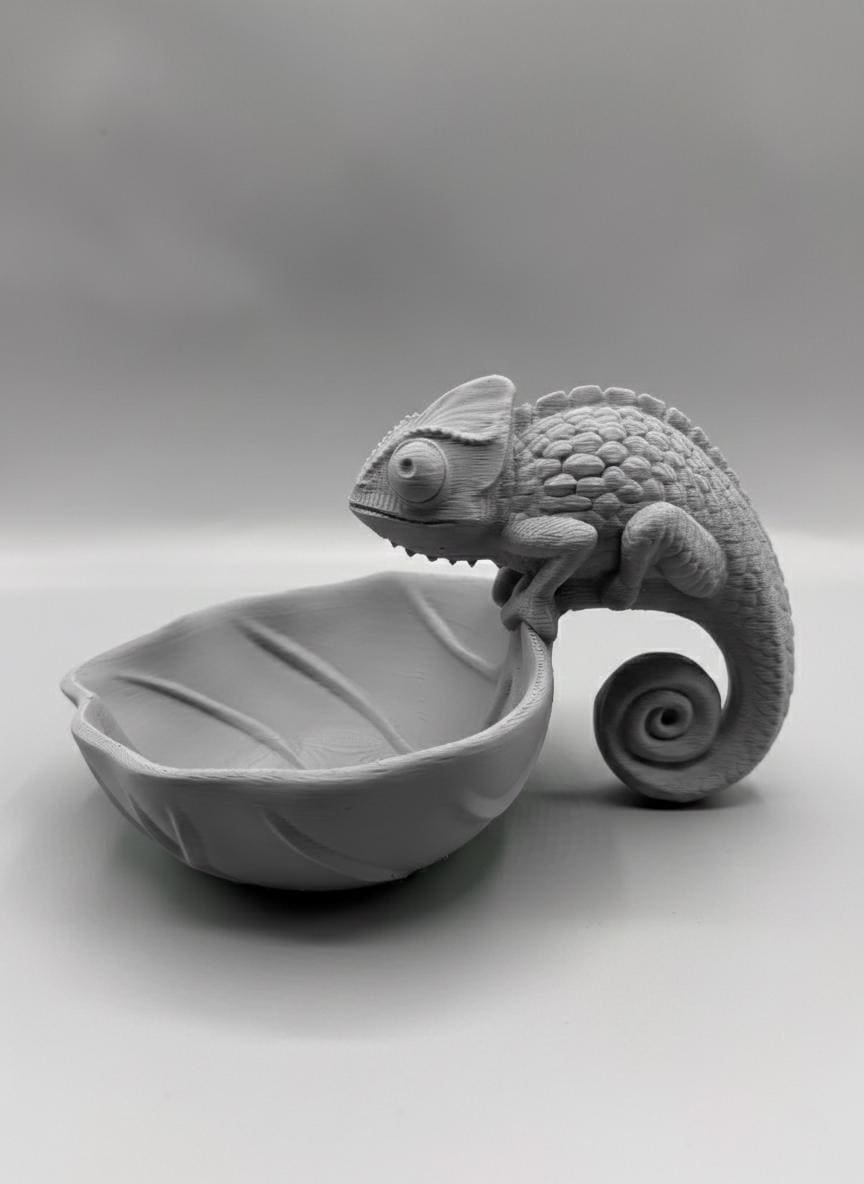 Add a touch of whimsical charm to your home with this 3D-printed Chameleon Catchall Bowl.