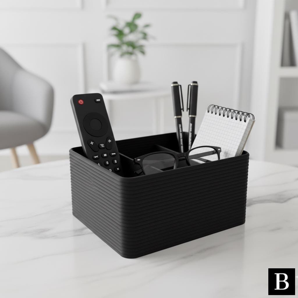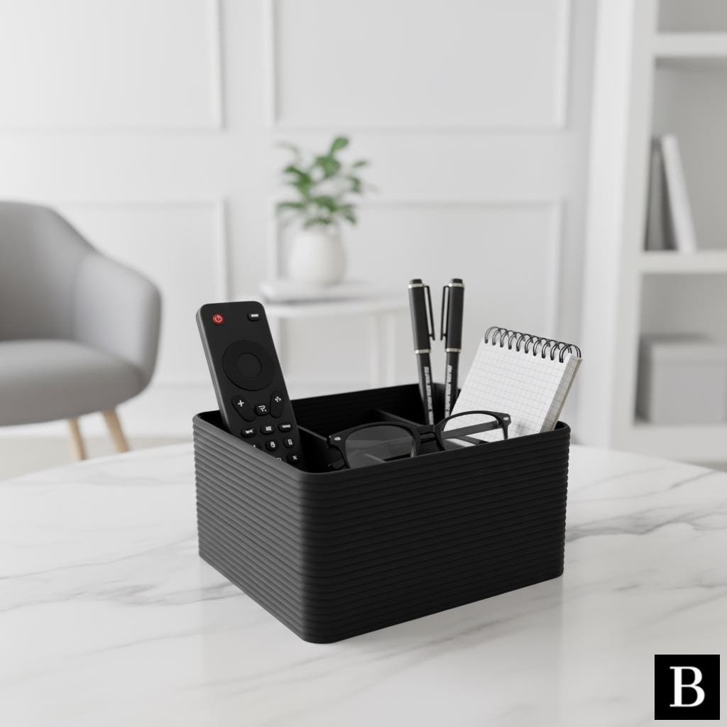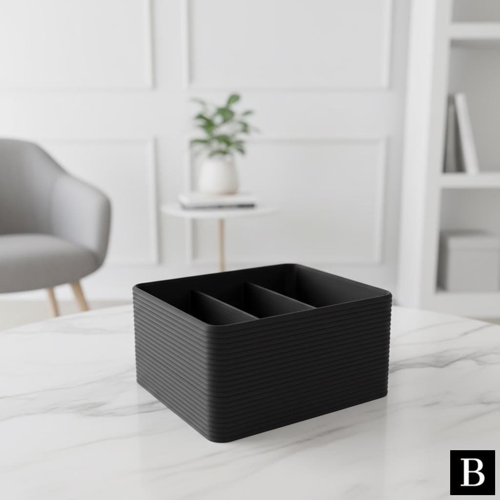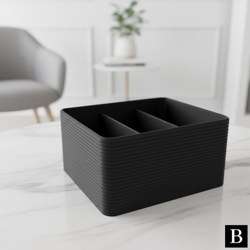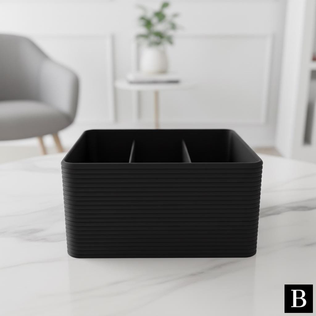 This ribbed designed contemporary desk organizer is a must-have for any living room, offering a stylish solution for organizing loose items on your coffee table. Its elegant design and practical functionality ensure you’ll never search for your desk items again.