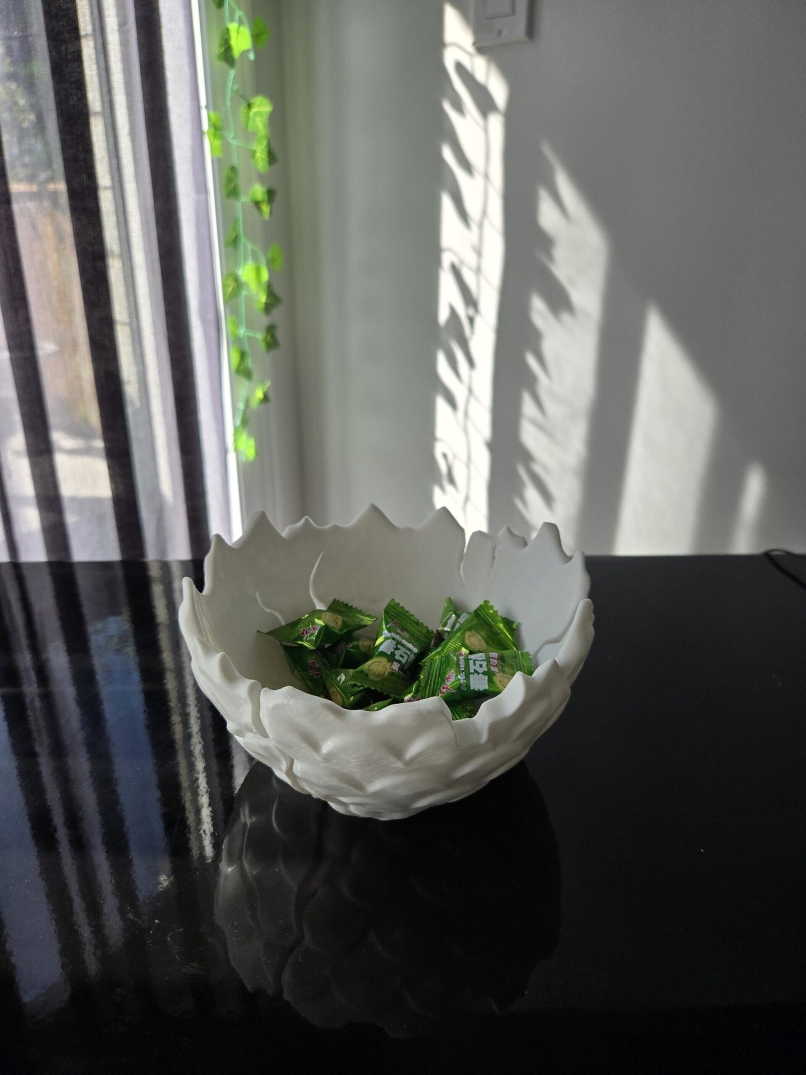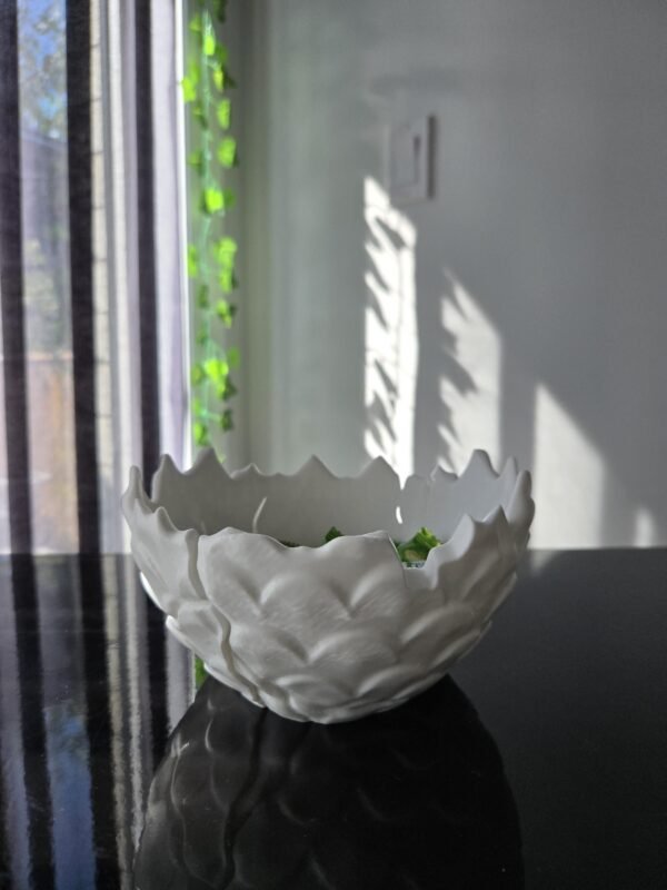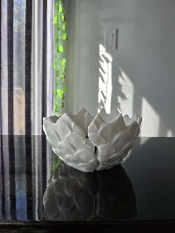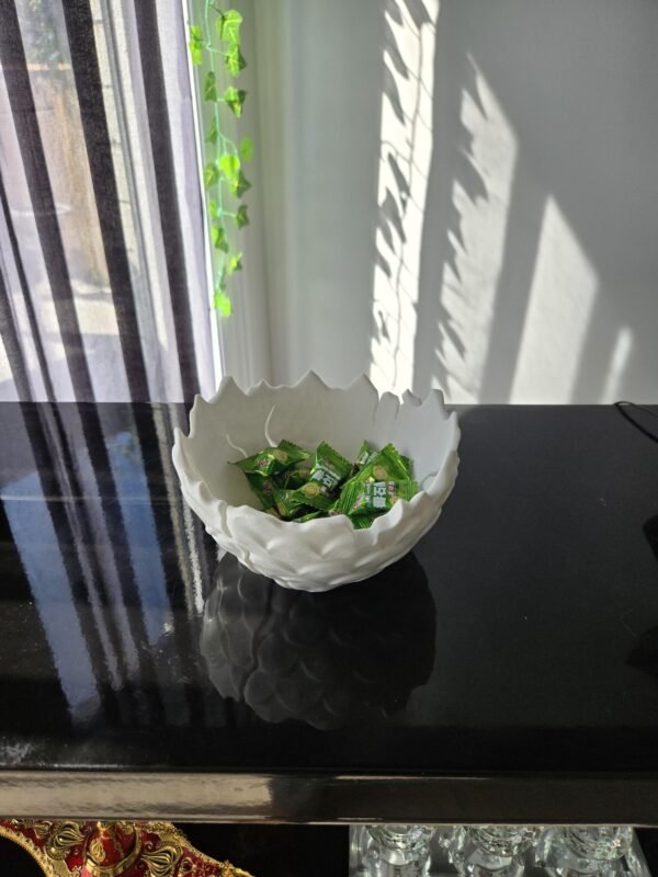 A bowl designed from a hatched egg shell! A unique way to hold your candy’s and other accessories at home or during Halloween!