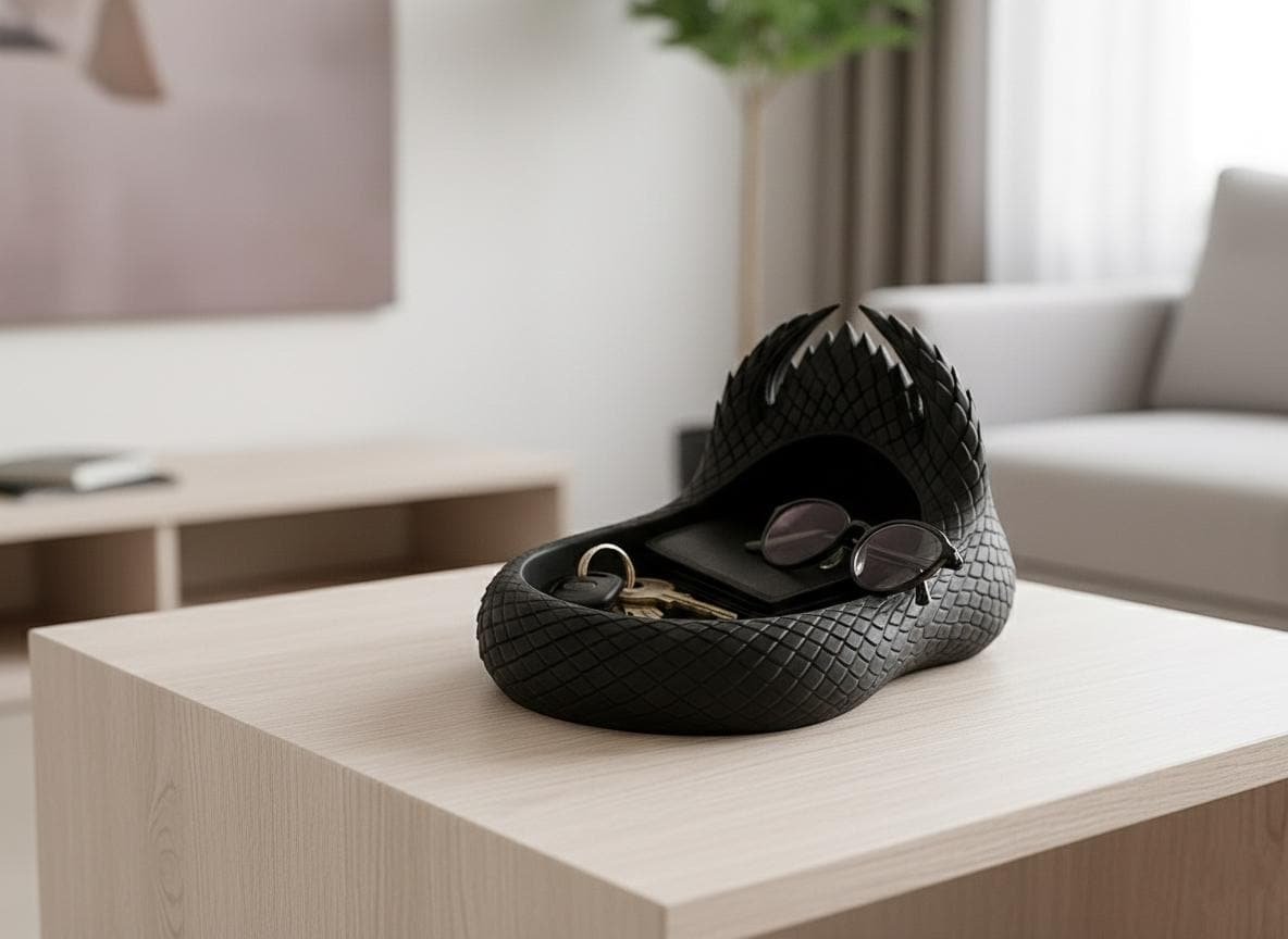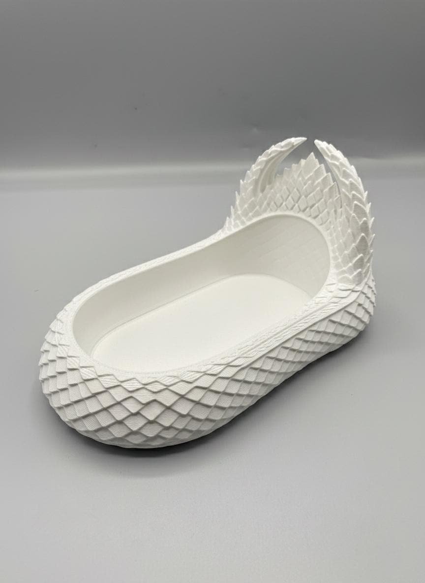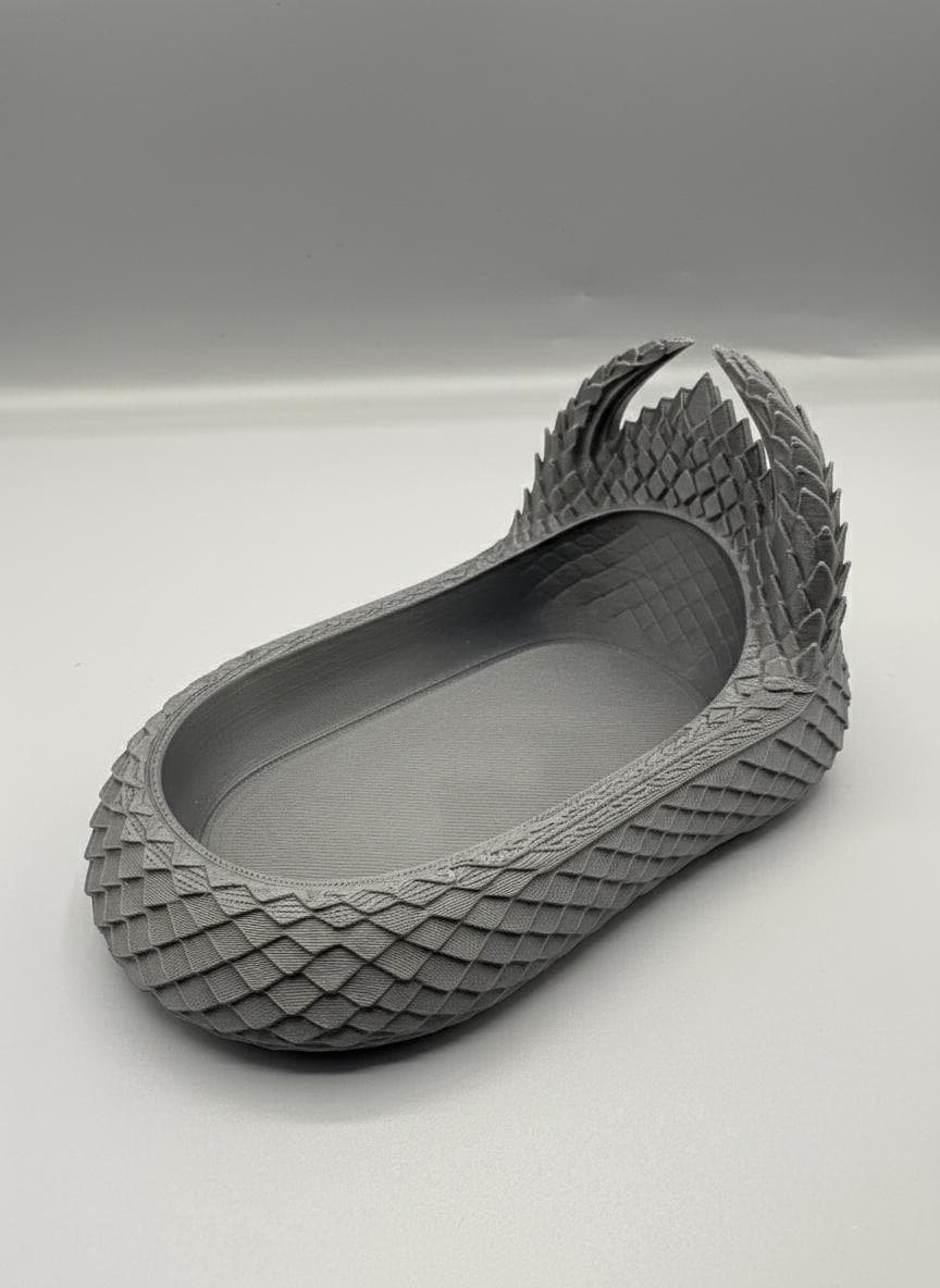 Keep your treasures guarded by the scales of a dragon. This intricately designed Dragon Scale Catchall Tray is the perfect blend of fantasy and functionality. Whether you’re looking for a unique place to store your gaming dice, daily jewelry, or office supplies, this 3D-printed piece adds a touch of mythic flair to any room.