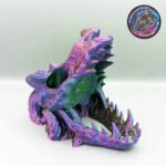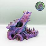 A two in one decor piece shaped as a dragons skull. Hang on the wall with the included hanger insert, then take off your wall and use as a dice tower for your tabletop games! Multiple colors to choose from.