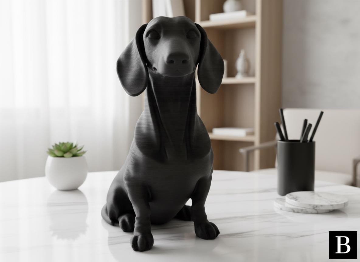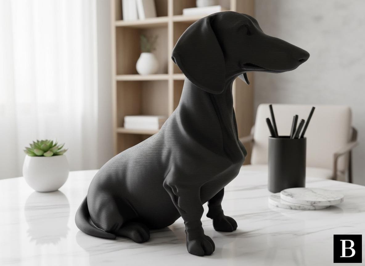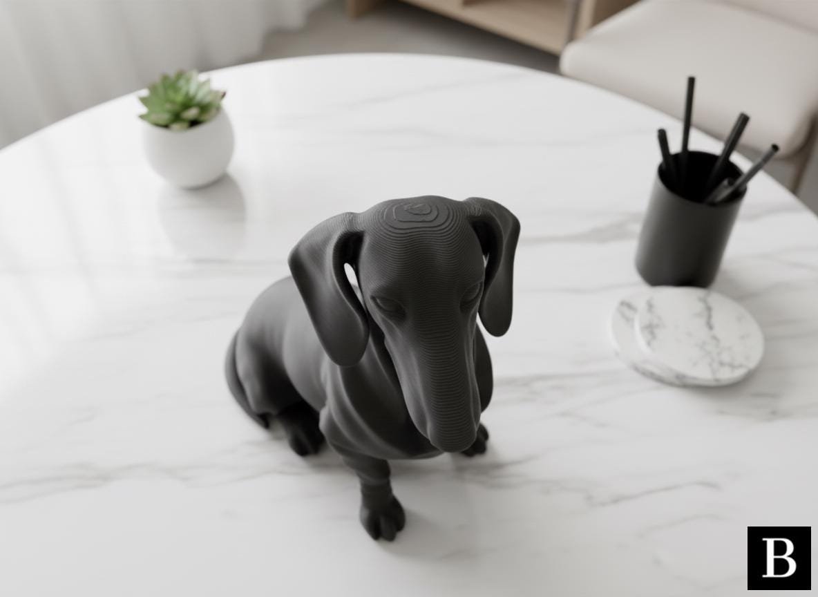 This great minimalist dachshund statue beautifully blends realism with a modern, decorative look, capturing the essence of the breed in a sleek form. This little fellow makes a charming and stylish addition to any home decor.