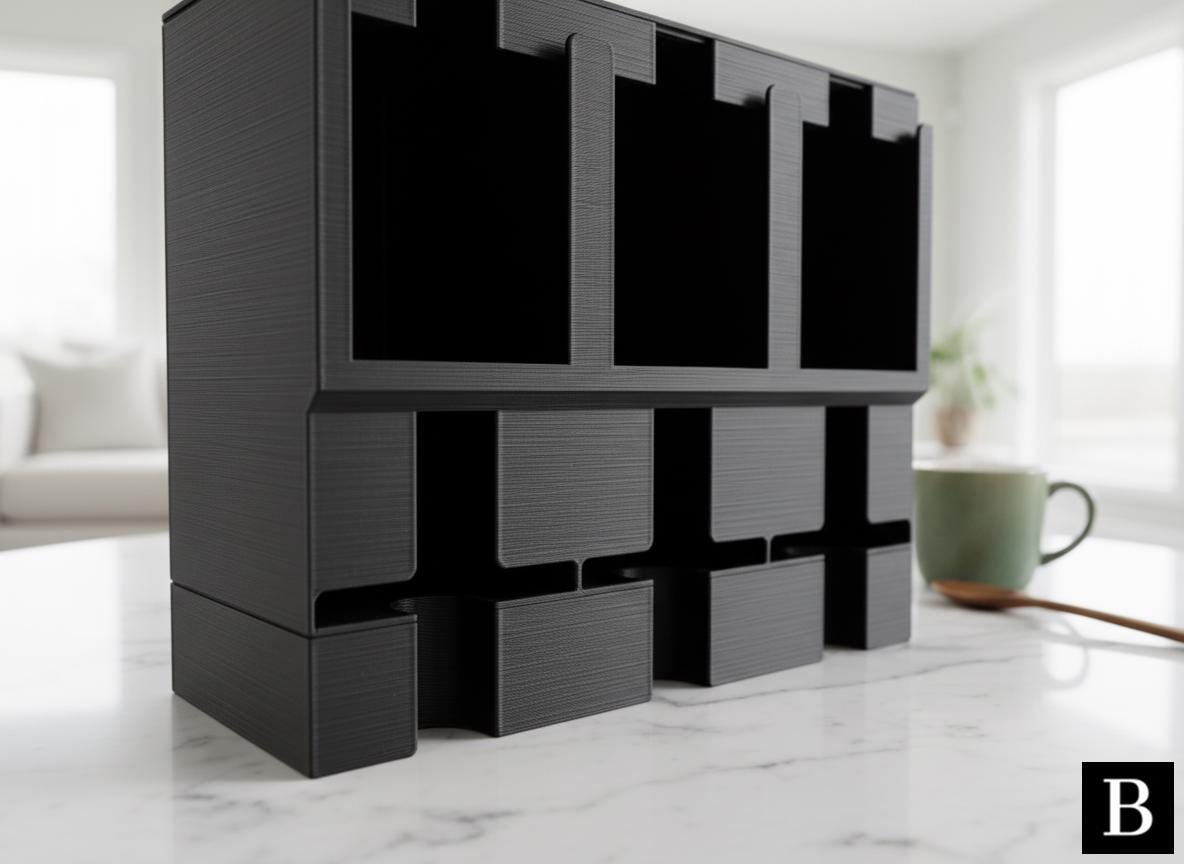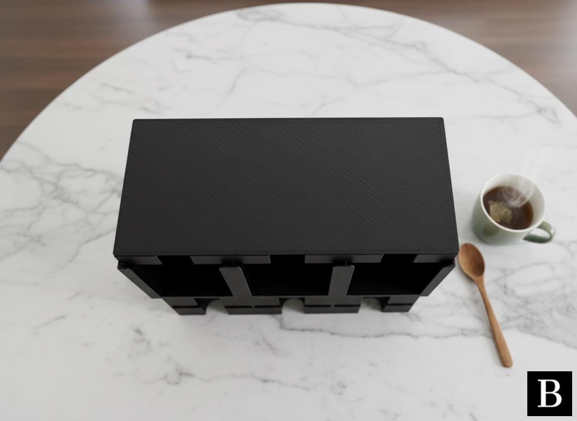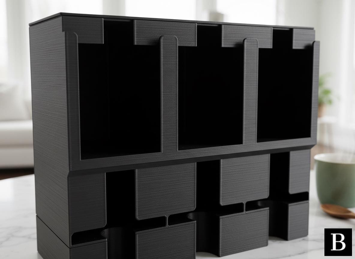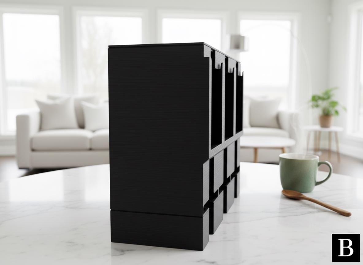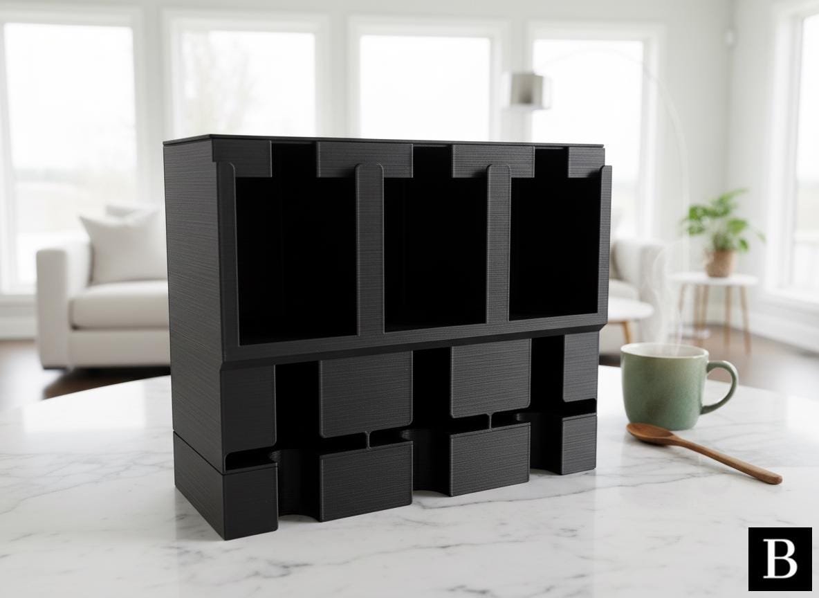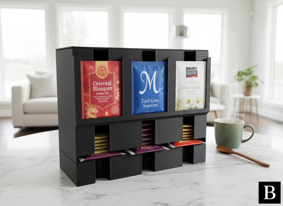 This modernly designed tea organizer and dispenser keeps your favorite tea types neatly organized and accessible, perfectly accommodating all common tea packs. Its sleek aesthetic and practical compartments make it a stylish and functional addition to any kitchen or pantry.
