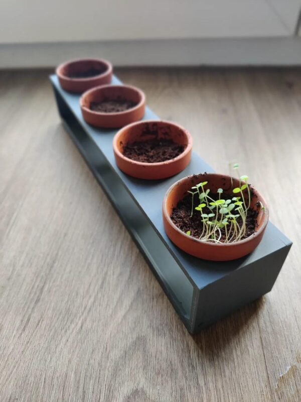 This multi-planter is a great way to grow your favorite plants in one place! Place 4 Planter pots that have a diameter of 2″ Inches (5.2 CM) for each hole. Easily drain out water with the convenient pour out hole on the side of the drip tray!