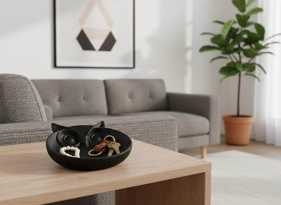 Keep your essentials organized with this stunning Owl Catchall Tray. Whether you need a spot for your daily jewelry, a dedicated place for your keys, or a unique desk accessory, this owl is ready to watch over your most important items.