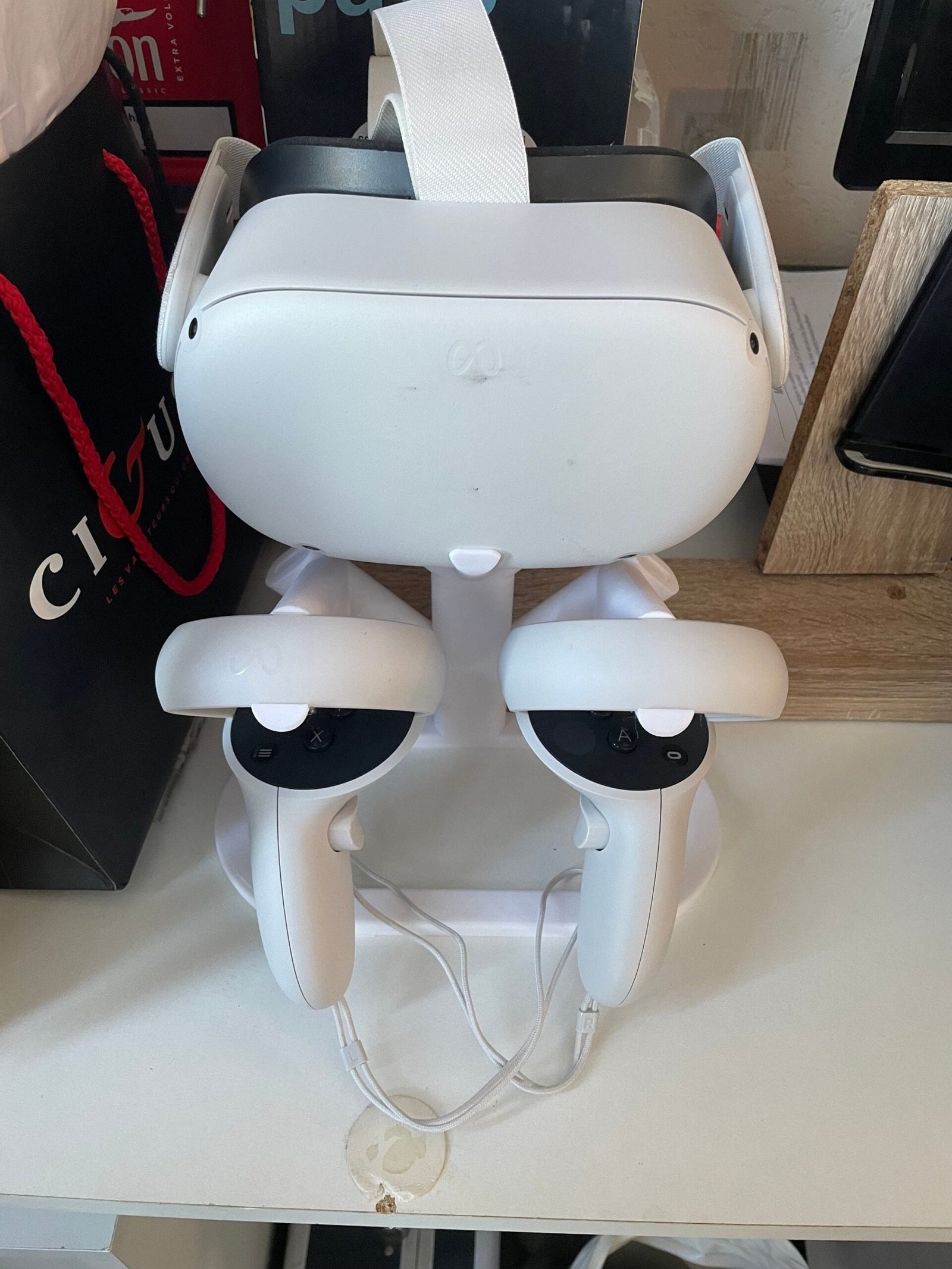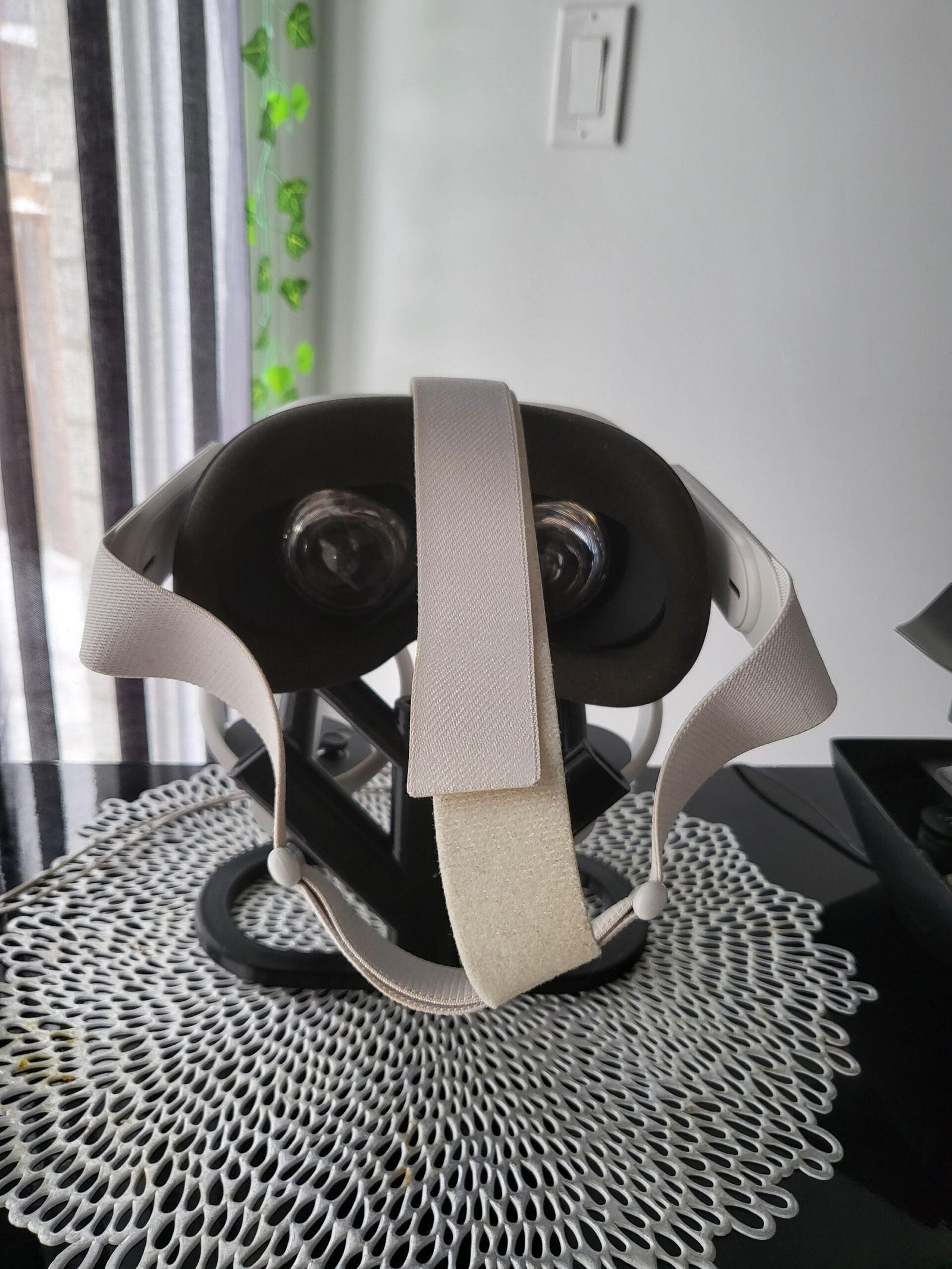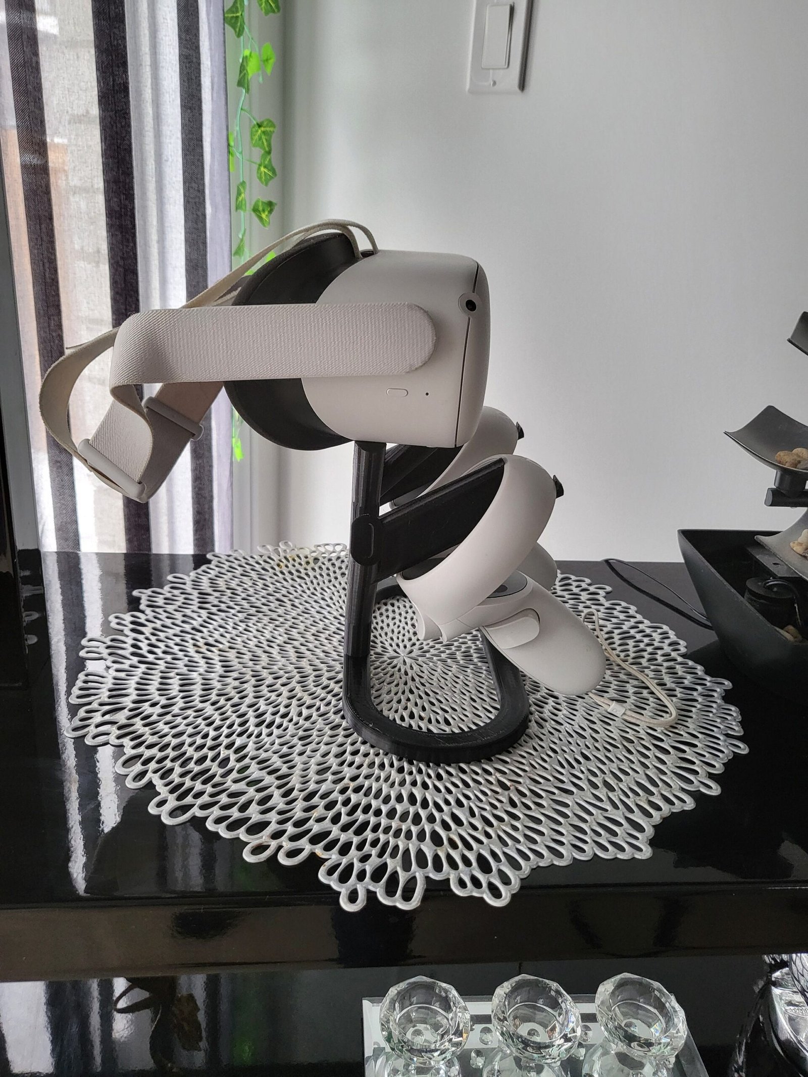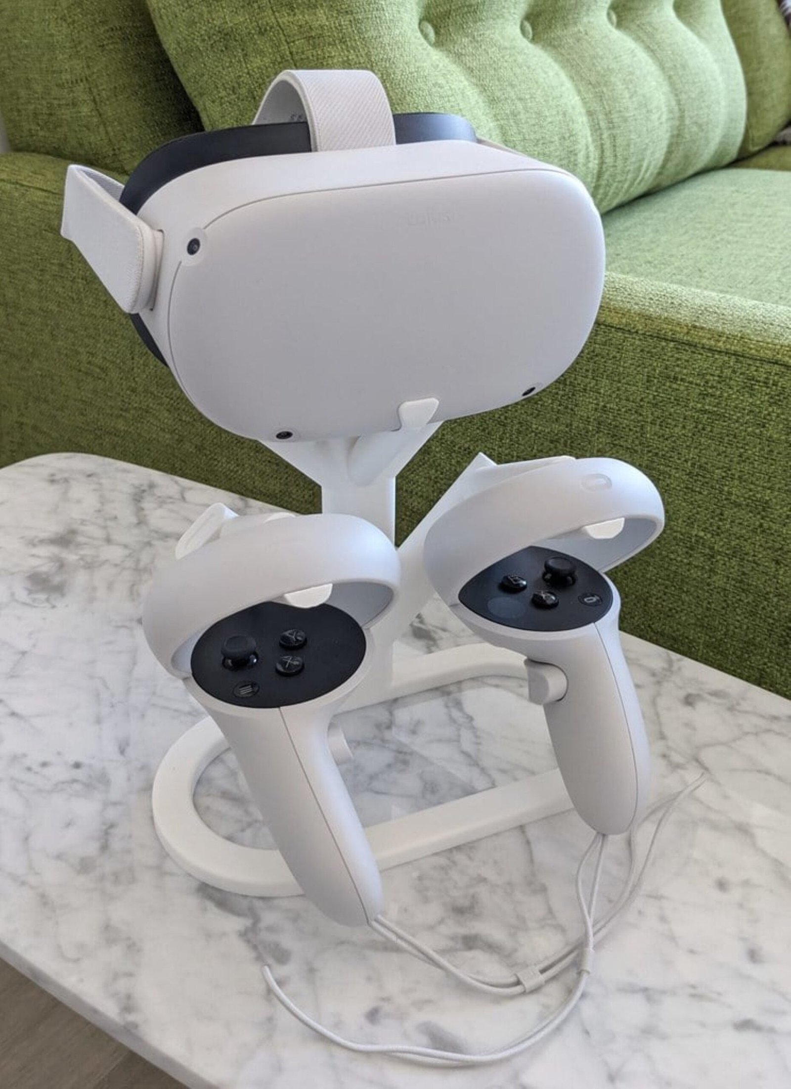 Easily store your Quest 1 or 2 right n your standafter a long hard day of VR gaming! This simple yet minimal stand is a great way to free up space and provide an aesthetic charm to your VR room!