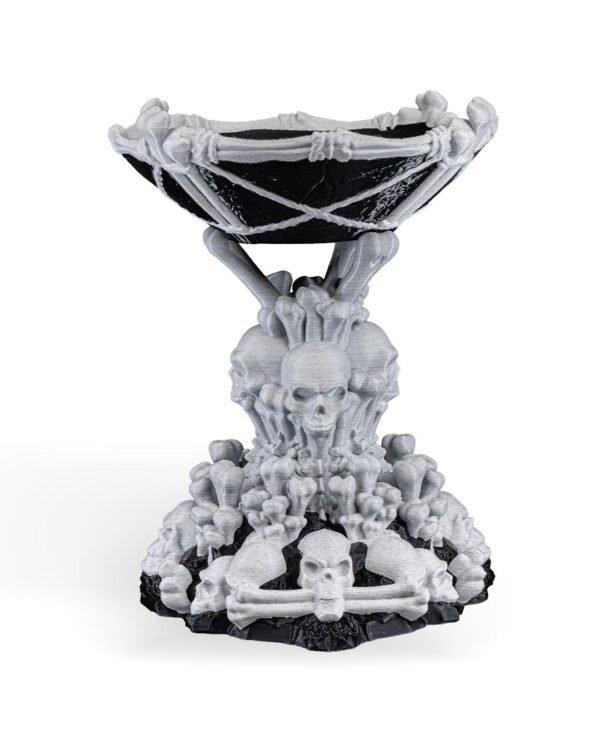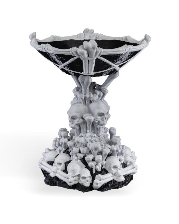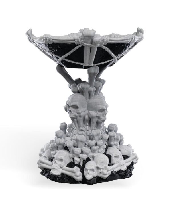 Elevate your spooky or gothic room with this unique skull tower candy bowl! Available in White Skull / Black Stand or single color options.