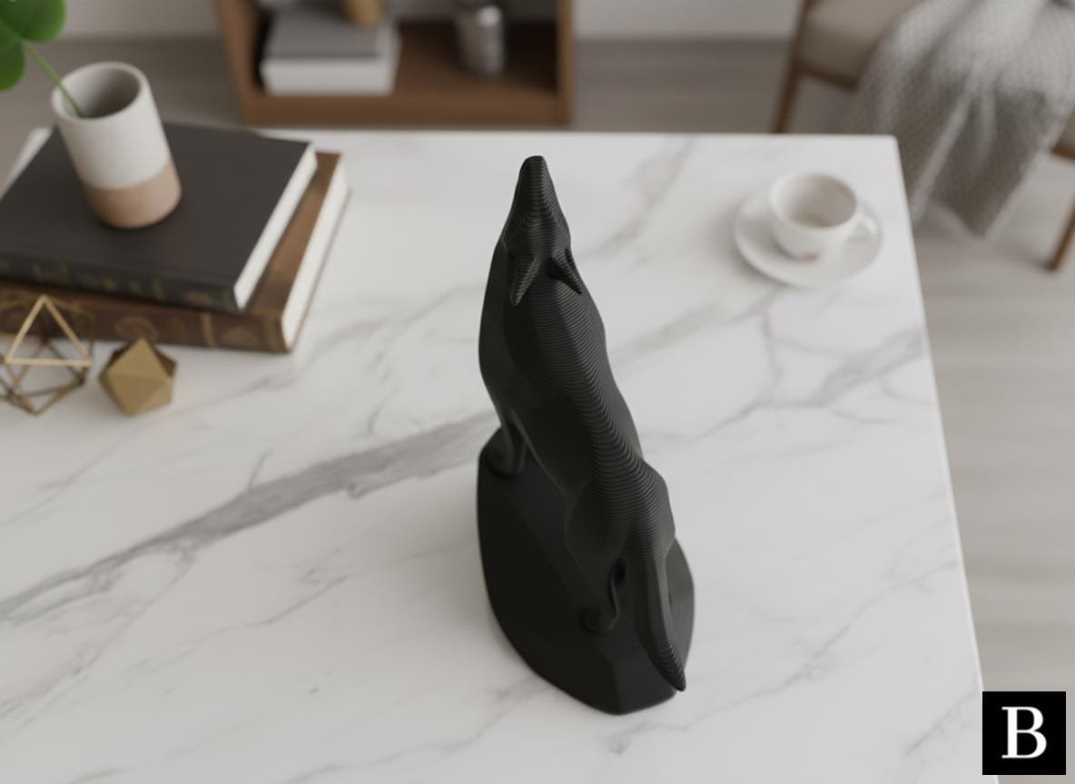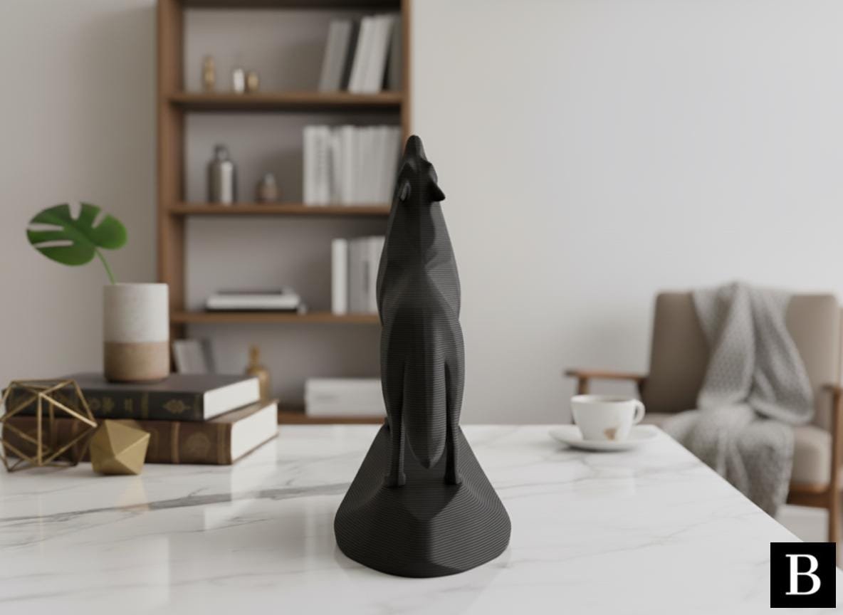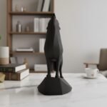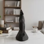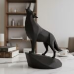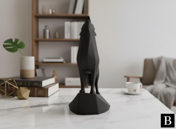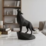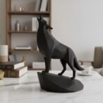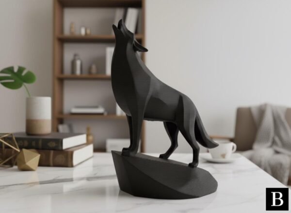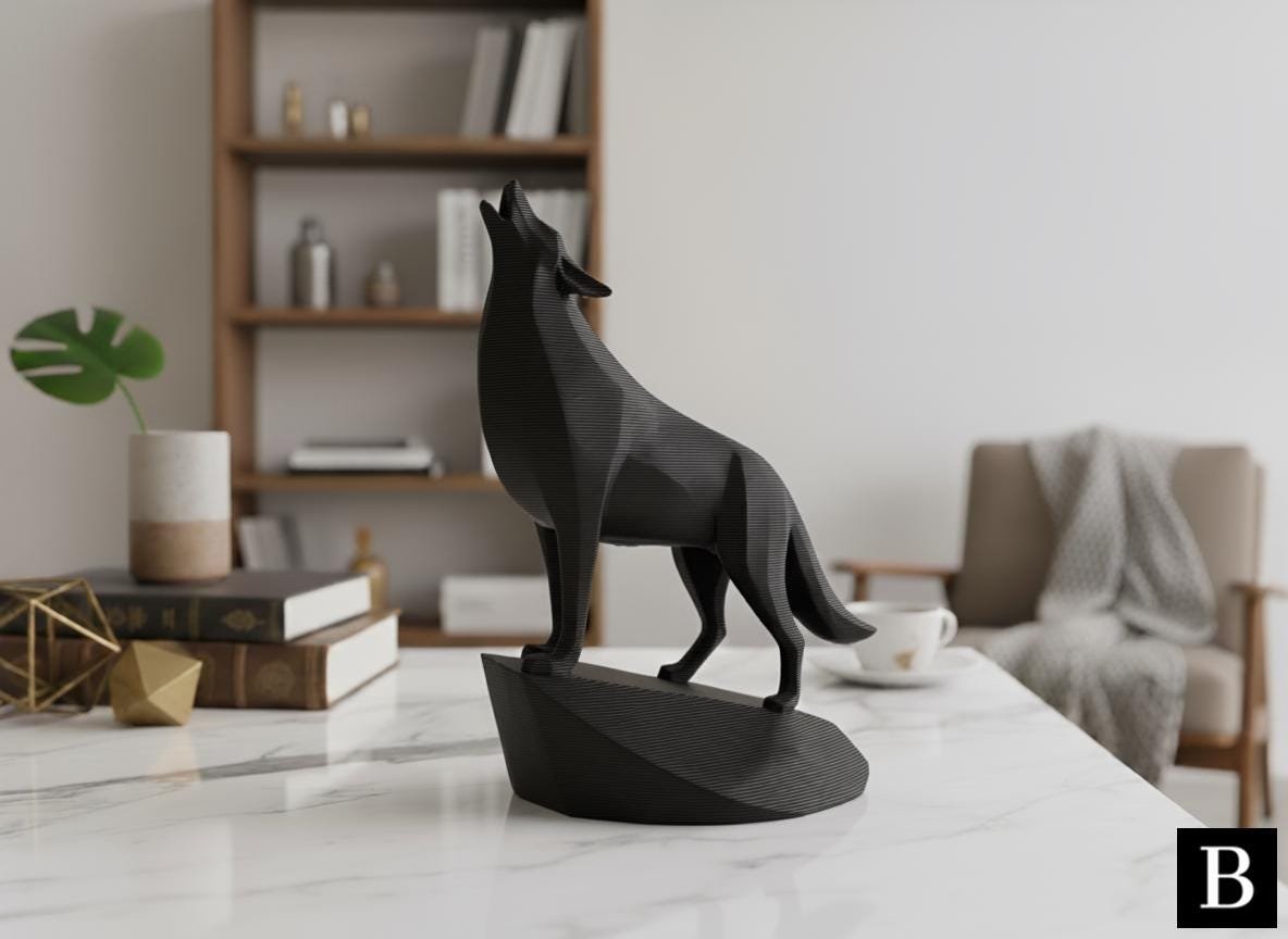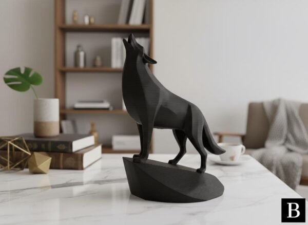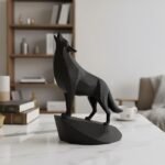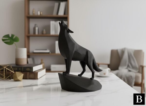 This unique minimalist sculpture captures the intense moment of a wolf howling, lifting its head with majestic, commanding presence on an integrated stand. Despite its minimalist style, carefully chosen details like angled ears and tense posture create a powerful and graceful piece, perfect as a clean, modern, and confident shelf or desk decoration, and an easy-to-add gift for any animal lover.