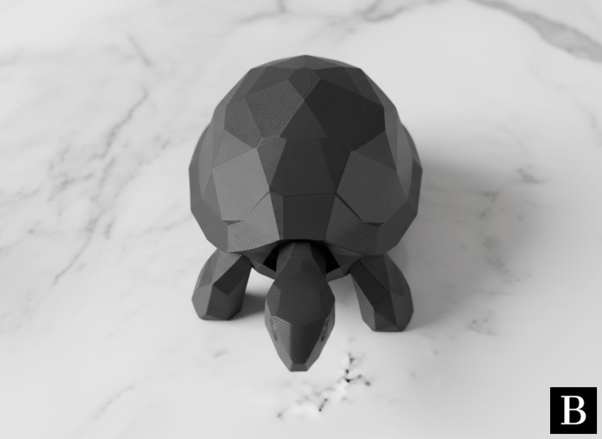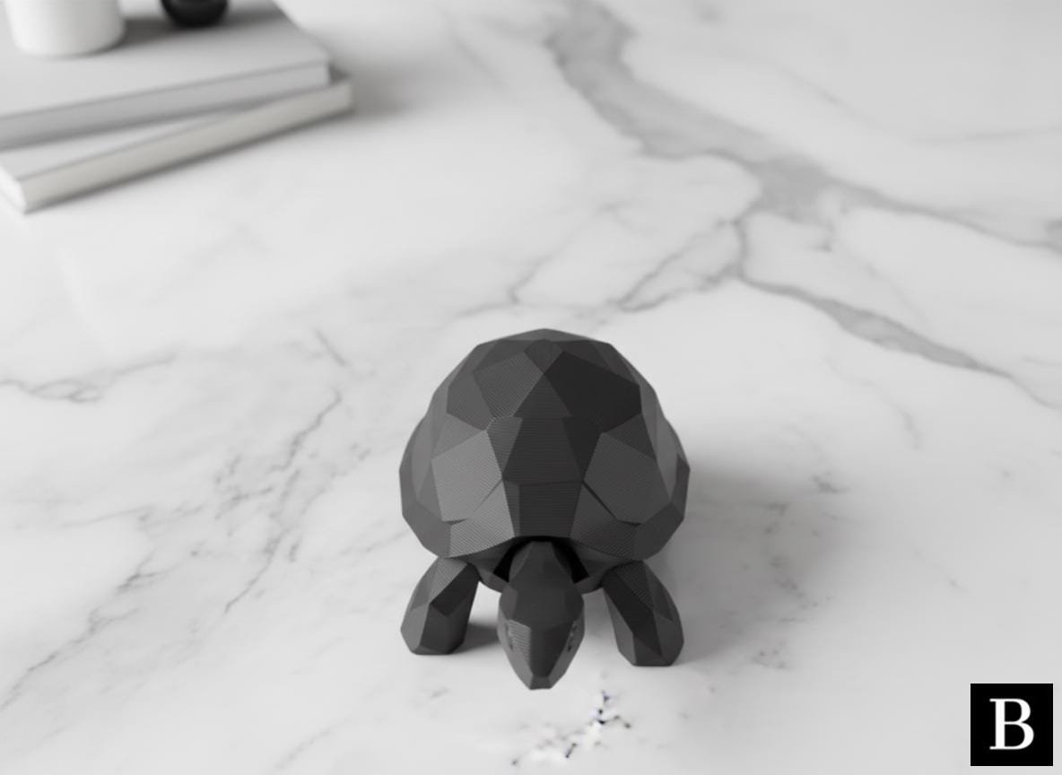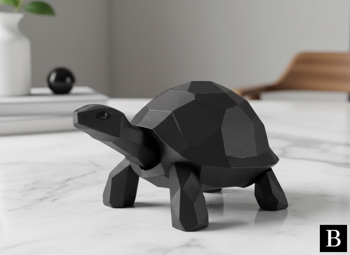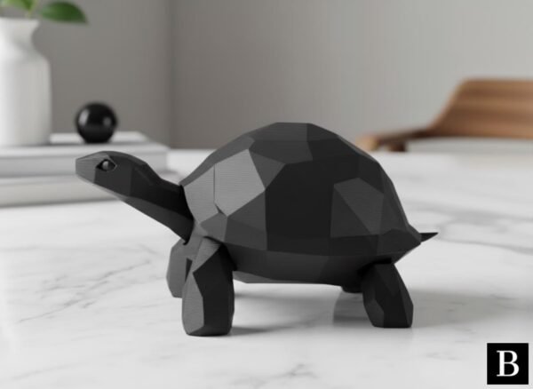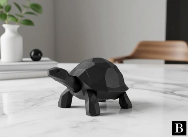 This modern low-poly interpretation of a walking turtle is realized as a captivating sculpture, ideal for decorating your living room or garden. Its unique design brings a touch of artistic whimsy and contemporary elegance to any space.