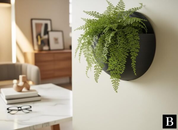 This wall-mounted ball plant pot, inspired by modern stealth design, offers a sleek and minimalist way to display your plants. It’s easily attachable to any wall, adding a contemporary and artistic touch to your living space.